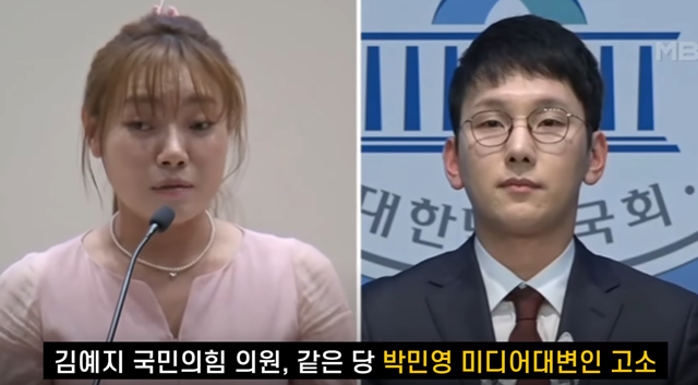 최근 ( 2025년 11월 12일), 같은 당 소속 박민영 대변인이 유튜브 채널에서 김예지 국회의원을 저격하는 장애인 혐오 발언 사건이 발생했습니다. 논란이 커지는 가운데 당 지도부는 박민영 대변인이 제출한 사표는 반려하고 구두 경고로 징계를 마무리하려고 하였습니다. 이에 김예지 국회의원은 17일 박 대변인을 경찰에 고소하는 강경한 입장을 취하였습니다.